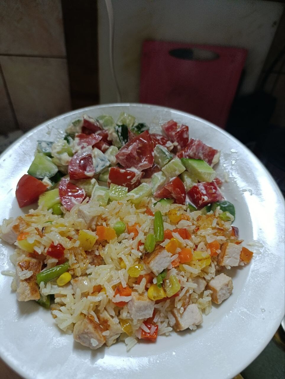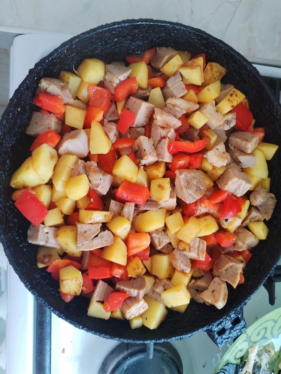 · Овощи: всё что есть — лук, морковь, перец, помидоры